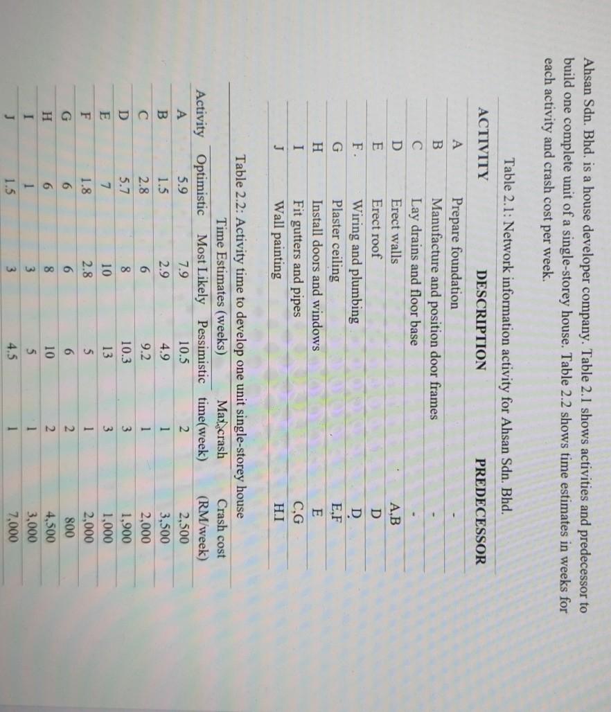 Solved Ahsan Sdn Bhd Is A House Developer Company Table Chegg Com