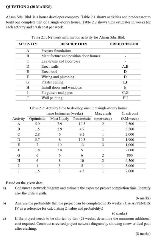 Question 2 20 Marks B Ahsan Sdn Bhd Is A House Chegg Com